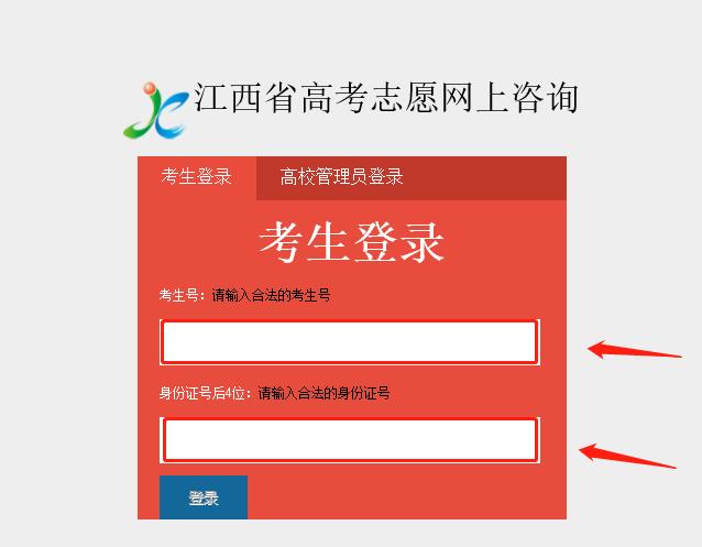 考生登录“江西教育网”,点击图片“2022年高考志愿填报网上咨询会”,进入网上咨询会页面,点击“网上咨询会入口”,进入考生登录页面,输入“考生号”“身份证号后4位”登录。如下图所示↓↓↓