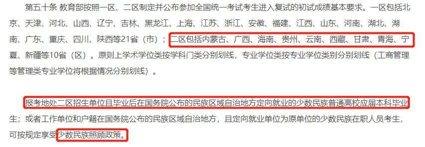 1. 报考地处二区招生单位,且毕业后在国务院公布的民族区域自治地方定向就业的少数民族普通高校应届本科毕业生考生;