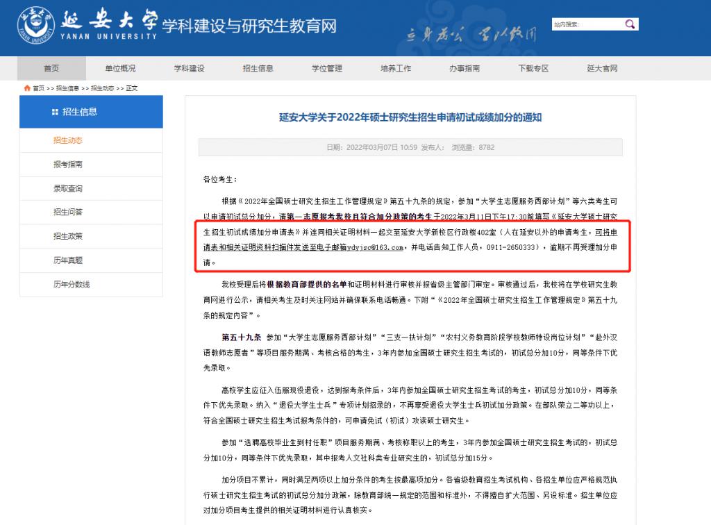 关于加分的消息的公告一般是在公布初试成绩后发布,如果你满足了上面的条件,那就一定要多多关注目标院校官网发布的消息,提前准备材料。