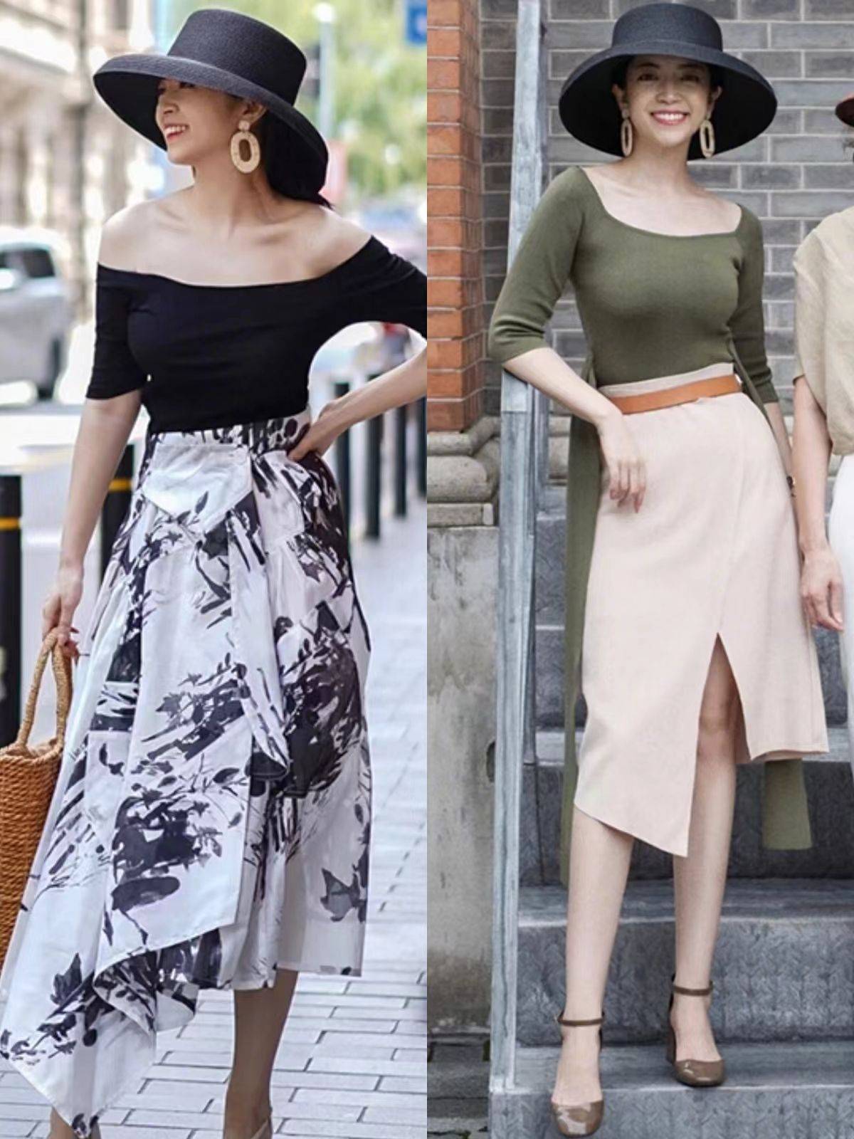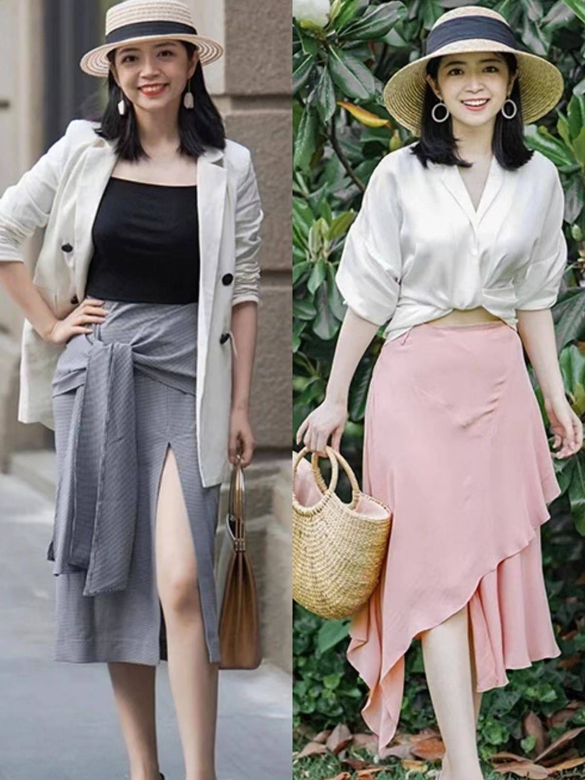 大家在日常生活中可以pick一下三木博主的搭配方式,用西服、衬衫匹配开衩裙、不规则半身长裙,又或者用各种大领口服饰组合高腰下装,显得人更洋气。