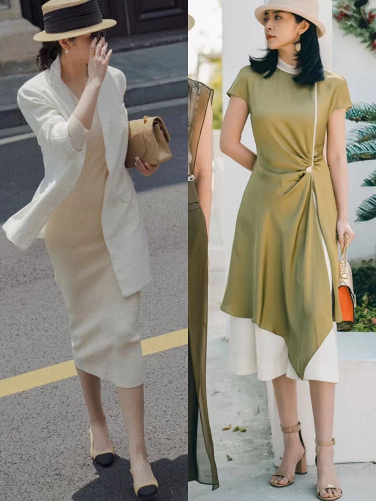 当然,你还可以就此进行延伸,比如穿连衣裙时,选择款式简约、线条干净但增加了一到两处亮点的裙款,穿上身简洁大方,又巧妙提升设计感。