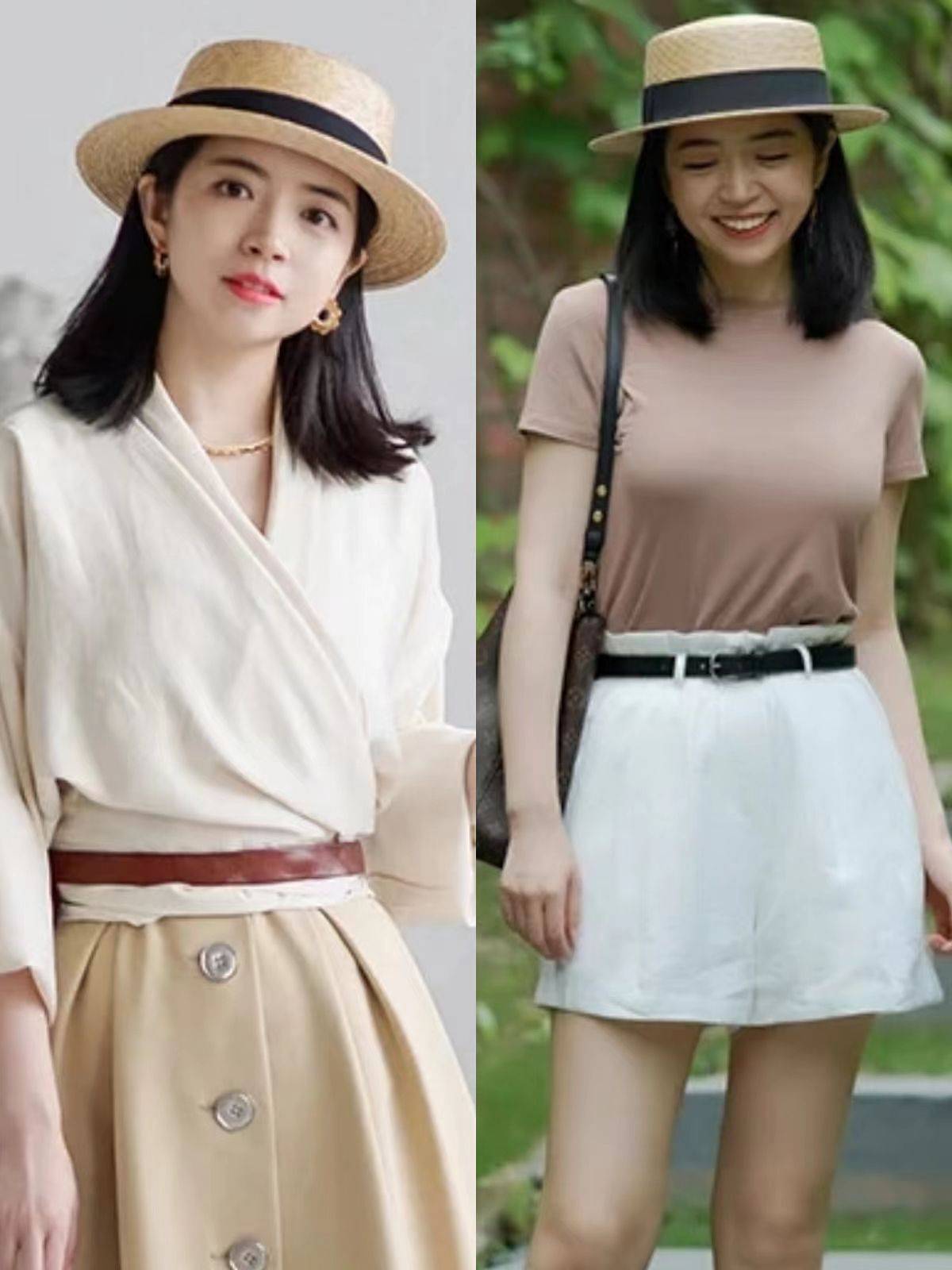 长度超过腰线位置太多的上衣,推荐用腰带外系方式点明腰线,腰带颜色可以与裙装、鞋子或者帽子一致。