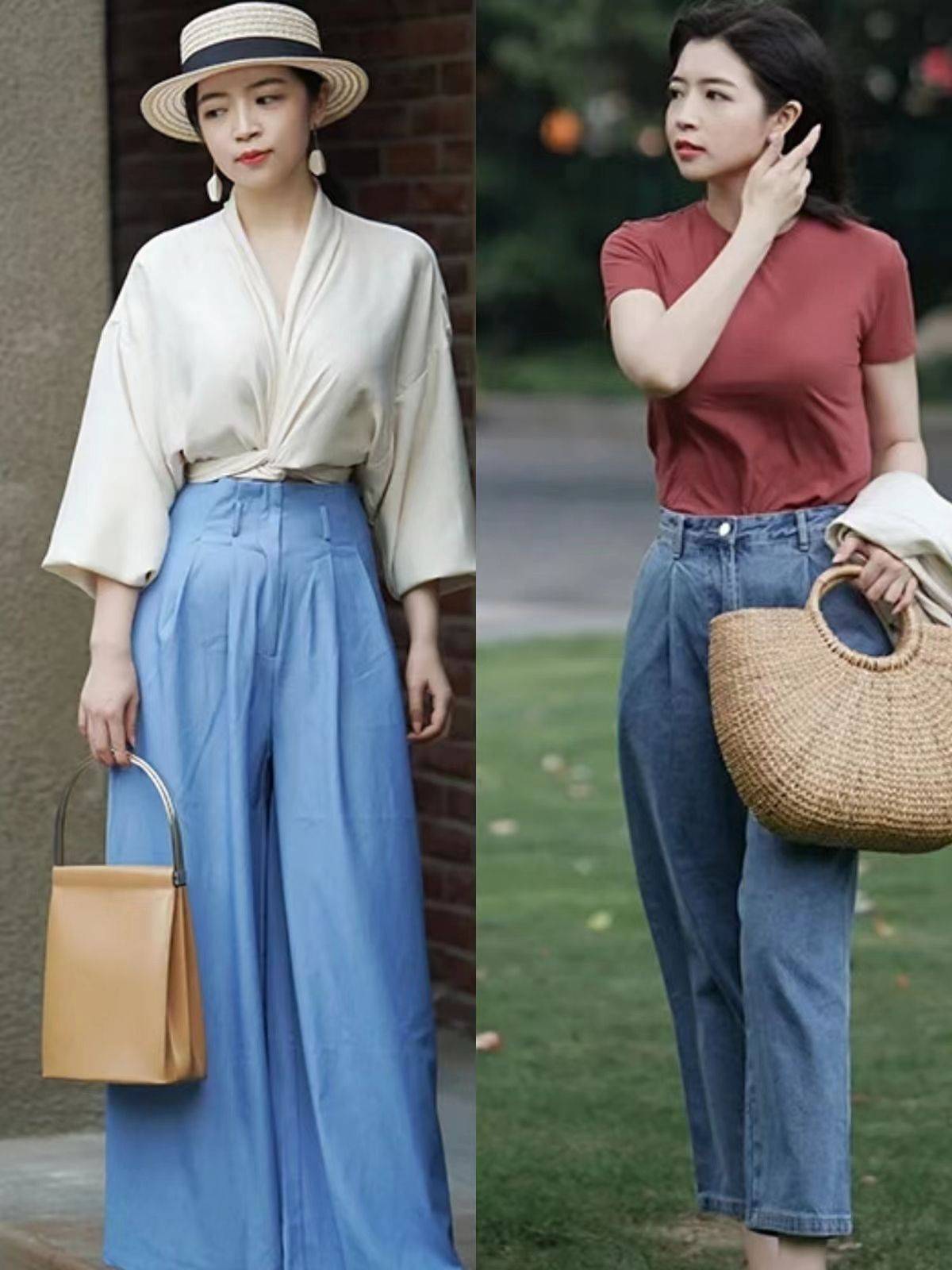 关于衬衫、T恤、针织衫、阔腿裤、牛仔裤、半身长裙这些基础款,若是在打造高腰线时过于一板一眼,会让你的造型看起来偏呆板。