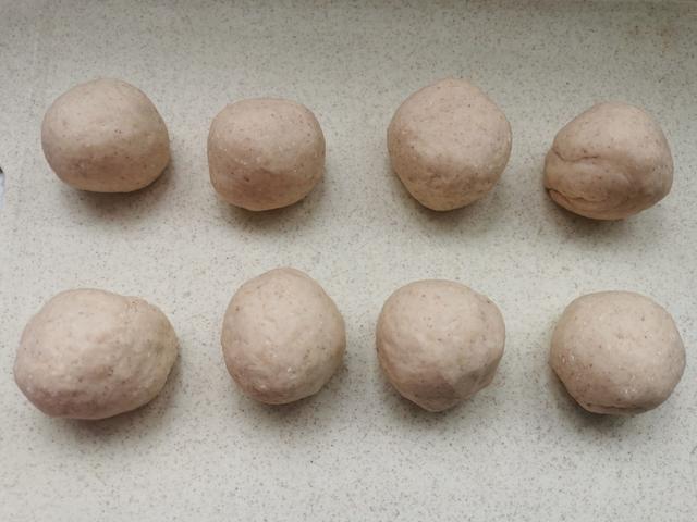 2、揉好的面团盖上保鲜膜醒面10分钟就可以了,搓成长条,分成8个面剂子,挨个儿搓圆。