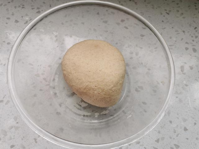 1、盆中倒入普通面粉和全麦粉,加入酵母粉和清水,搅拌均匀揉成偏硬一些的面团。