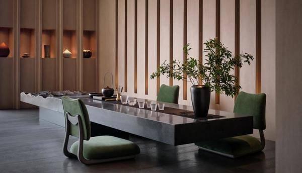茶吧是傅厚民个人最为喜爱的空间,在这里可以真切感受到禅意,从光滑的石材质感到轮廓层次鲜明的的外观,让这一区域的感官变得多元丰富:更加强烈,也更有触感。