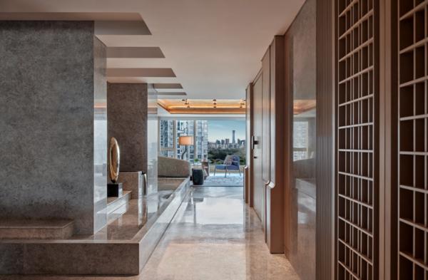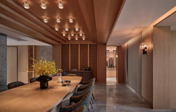 富有仪式感的线条层次:利用“建筑的方式”游览空间,创造空间中的层次变化是傅厚民擅长的视觉游戏。当自然元素与奢华品质取得真正的联结,空间中的宁静优雅便会以一种流动自如的状态存在。