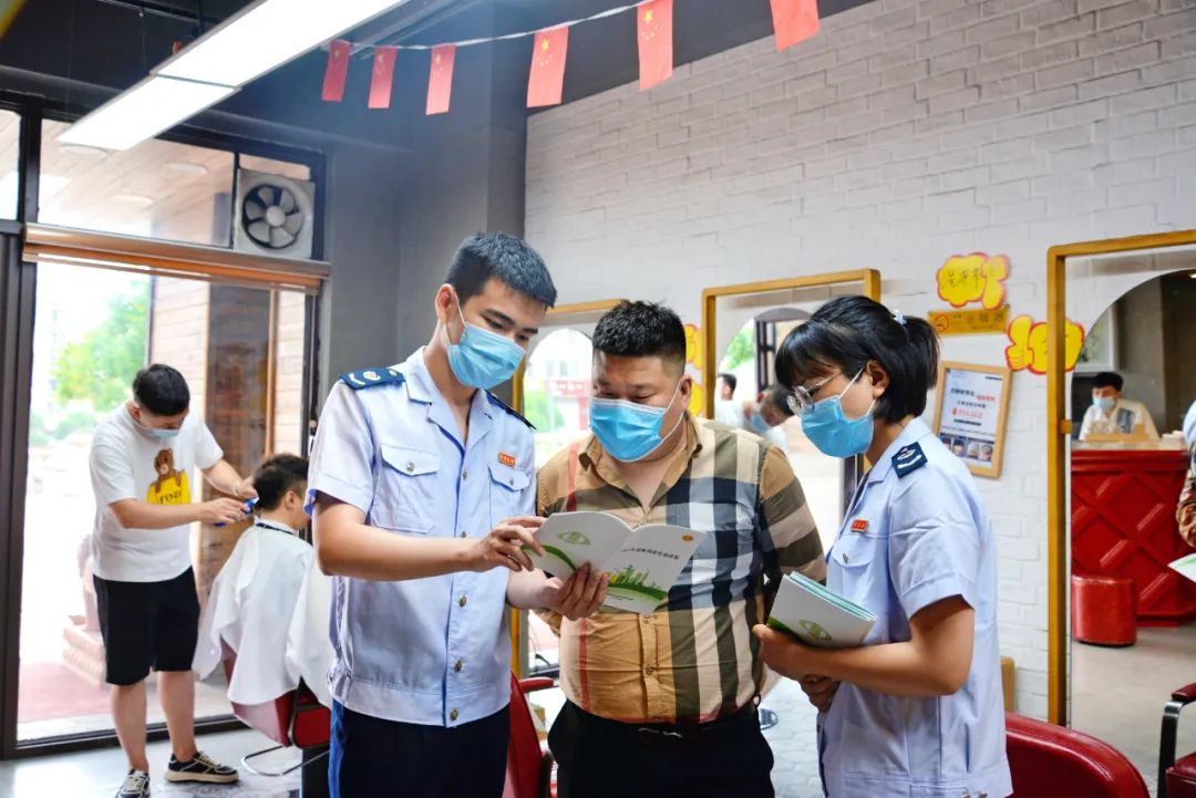 图为吉林省辽源市西安区税务干部在美容美发店讲解小微企业、个体工商户税费扶持政策。张正一/摄