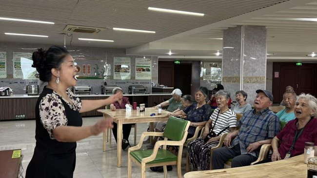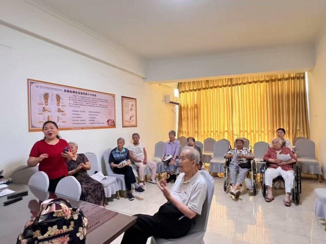 肖艳菊:敬老爱老是咱们中华民族的传统美德。从2025年2月开始,我每星期两次到澄迈荣瑷康养医养平安医院,教老人们唱歌。节假日的时候,就组织文艺骨干去给老人们办演出,一年下来有近10场。