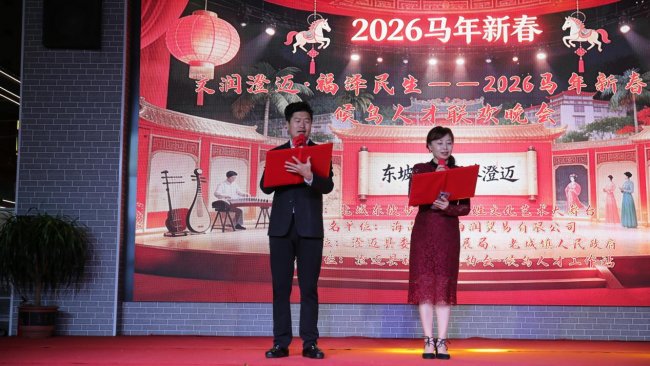 东坡遗韵润乡土,金马迎春启新程。2026 年 2 月 9 日晚,老城东坡步行街·百姓文化艺术大舞台灯火璀璨、暖意融融,“文润澄迈・福泽民生 ——2026 马年新春老城候鸟人才联欢晚会”在此圆满举行。